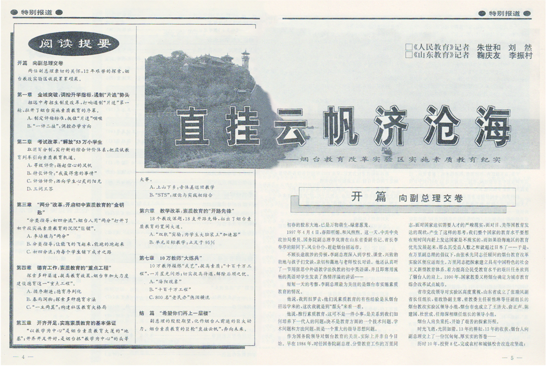 80年来,我们始终以专业的眼光审视教育,以宣传的视角推动变革。当素质教育的春风吹拂神州大地,我们以敏锐的眼光捕捉改革先机。1997年,我们与《人民教育》联合推出《直挂云帆济沧海——烟台教改实验区实施素质教育纪实》,系统提炼烟台素质教育的内涵式发展路径,助力素质教育在山东从“一域试点”迈向“全域实践”。此后,我们持续追踪高密素质教育实践,通过系列报道助推高密成为全国素质教育标杆。2008年素质教育新政实施后,我们迅速推出烟台支农里小学自主性作业改革、博兴县实验中学考试评价改革等鲜活案例,为各地提供可复制、可推广的方案。从基层探索到区域创新,改革之火在齐鲁校园次第点燃:青岛嘉峪关学校评语改革、龙口市实验小学语文教学整体改革实验、宁津县“当堂达标”教学模式改革……这些诞生于齐鲁大地的改革之花,经由我们的笔端,最终绽放在全国教育的广阔园地。